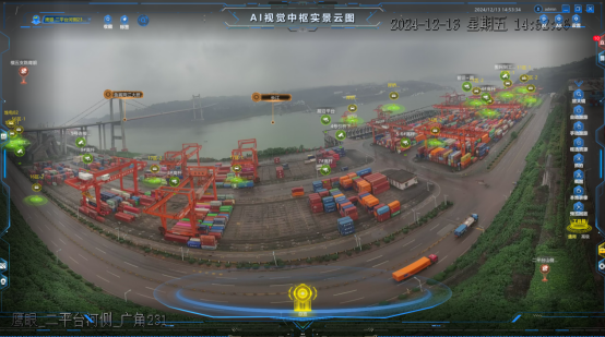 我们整合港区监控、算法与应急响应功能搭建了智慧安防预警平台,聚焦港区安全管理,以全景实时视频为实战地图,覆盖作业场区、仓储区、进出通道等关键区域。该平台运用AI + AR技术,深度融合视频、业务及物联数据,通过标签在AR实景视频呈现各类信息,实现数据、时空、视频全面关联,让管理人员“一张图、一站式”掌握安全及生产态势,提升管理效率。同时集成大数据算法与视频AI识别技术,自动识别隐患、实时预警,为港区安全做出了卓越贡献。