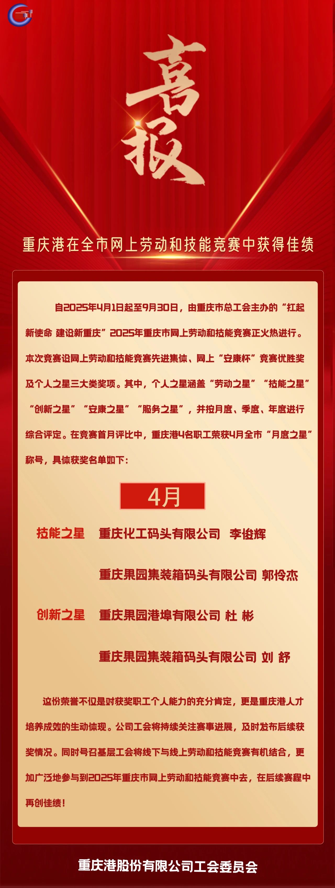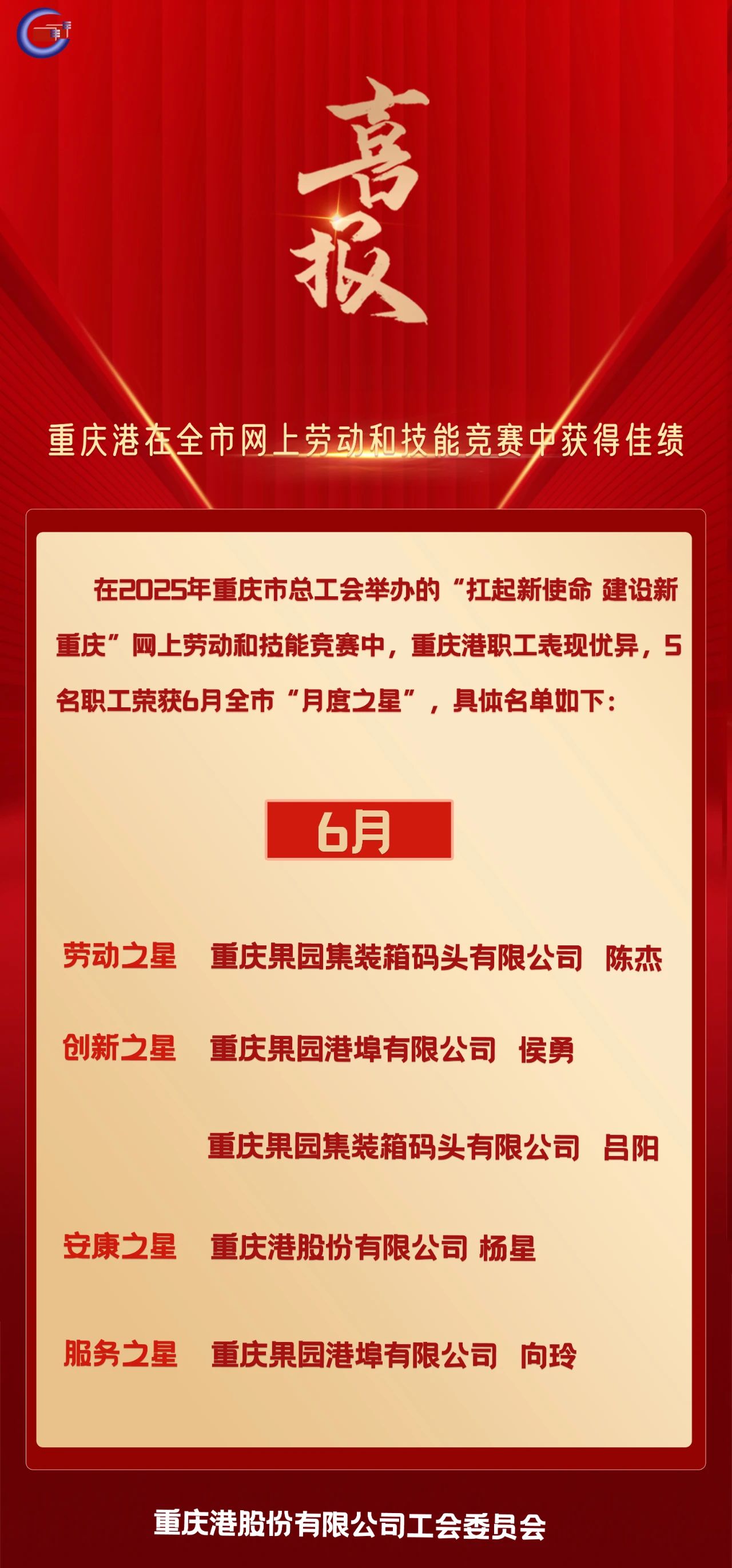 ?喜报!重庆港在全市5月网上劳动和技能竞赛中获得佳2025-06-03